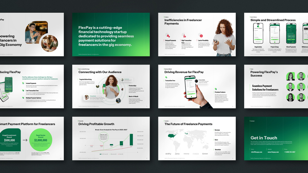 You'll get a professional and modern template that will help you create a stunning pitch deck for your business or project.